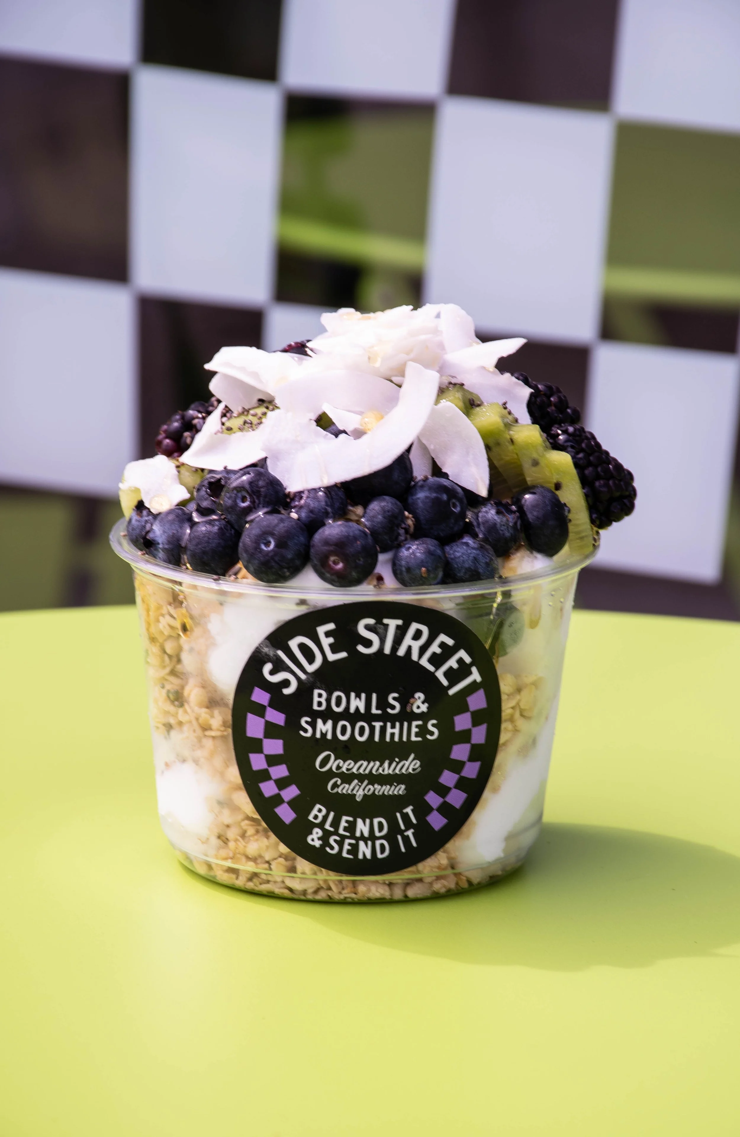 Coconut Sorbet - Granola - Blueberry - Blackberry - Kiwi - Coconut Shreds - Chia Seeds - Honey or Agave